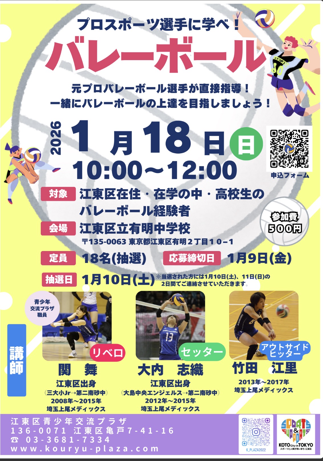 対象:江東区在住・在学の中学生・高校生のバレーボール経験者