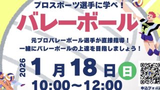 PickUp『プロスポーツ選手に学べ!バレーボール』のご案内 江東区青少年交流プラザ様からのご案内です。 『プロスポーツ選手に学べ』バレーボール編 対象:江東区在住・在学の中学生・高校生のバレーボール経験者 開催日時:2026年1月18日(日) 10:00〜12:00 場所:江...2025/12/20PickUp広報部